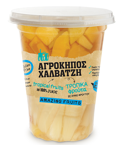 A mix of fruits including peach, pineapple, and papaya, with no added sugar.